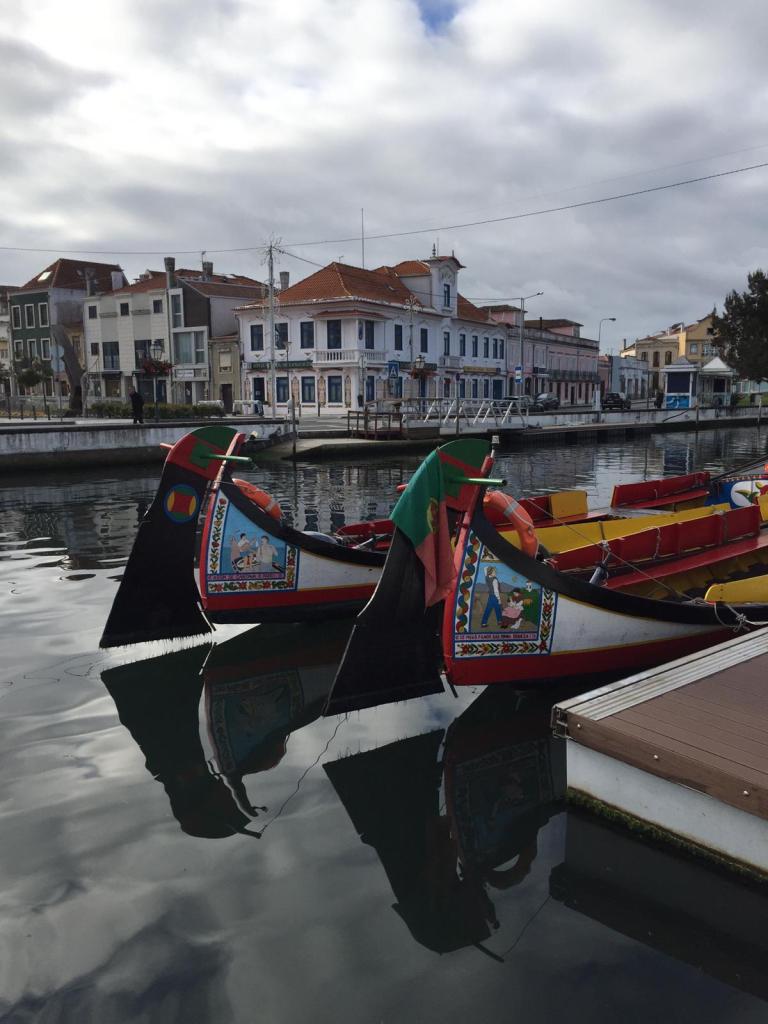 Aveiro une petite Venise, avec la lagune (qui sent bien la vase), les bateaux, les canaux…… de très jolies façades de maisons.On est allés tout au bout d’Aveiro prendre un bac pour traverser et se balader sur les dunes de Sāo Jacinto.