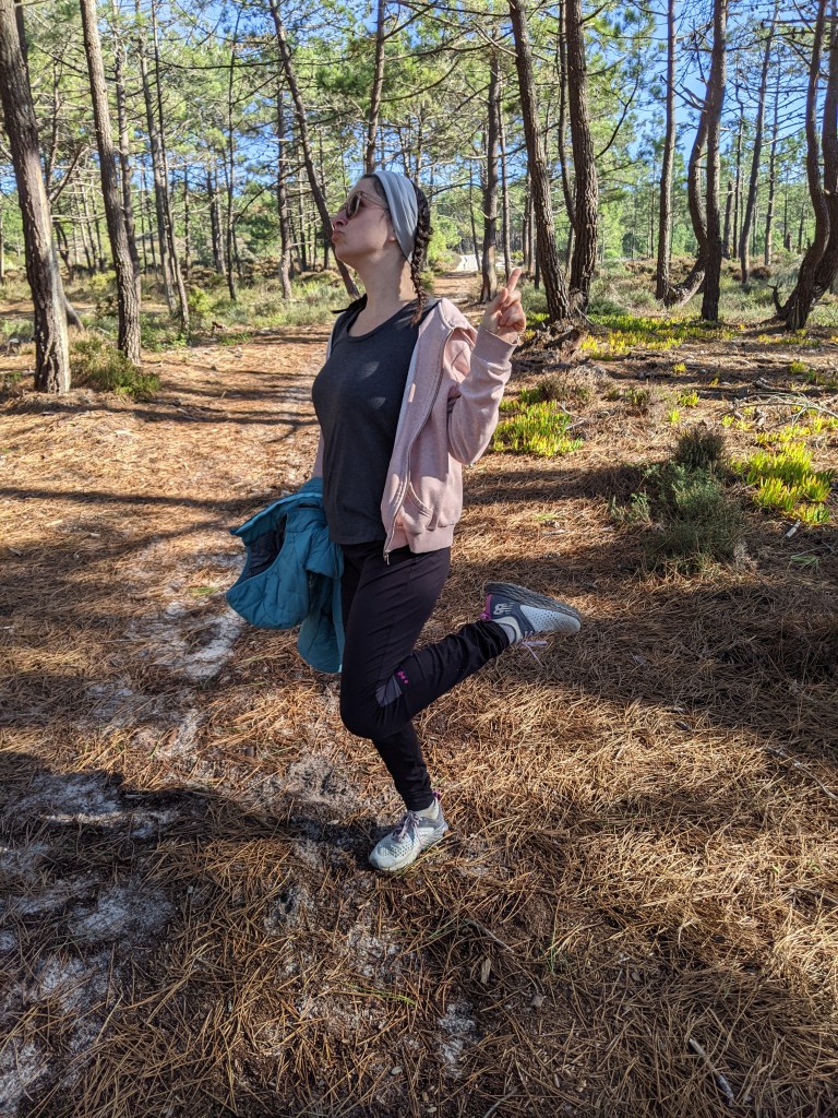 Et puis on a terminé par les petites maisons toutes cutes de la costa Nova. Bon on y a croisé deux instagrameurs en mode : « han trop bien c’est l’été on fait des photos presque tous nus! ». Heu bah nan il fait trop froid !La mata do Buçaco, une forêt préservée par des religieuses. Si on regarde bien la photo il y a trois bandes d’arbres. Au premier plan la végétation qu’il y avait avant l’humanité. Au second plein d’espèces exotiques plantées sans entretien. Au troisième plan une mono culture de résineux. Voilà c’était la minute botanique !Quechua princesse des coeurs qui se promène dans la forêt do buçaco.