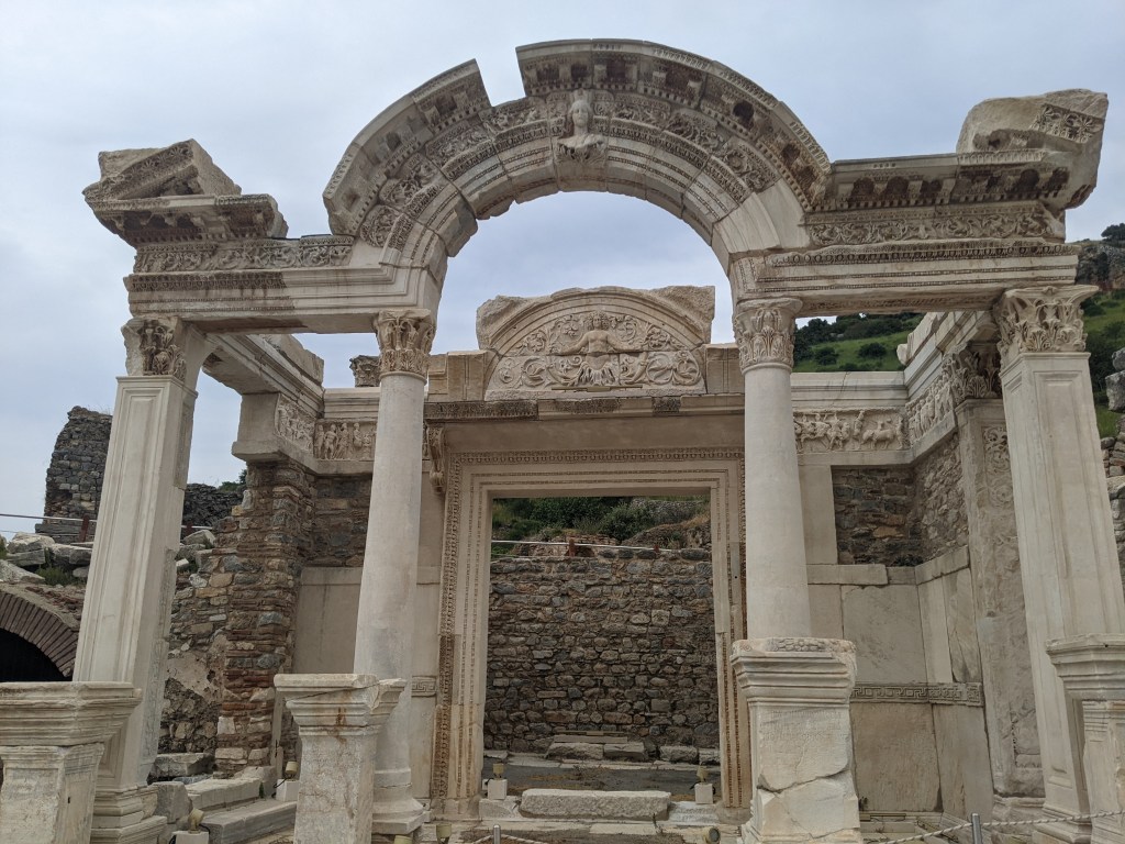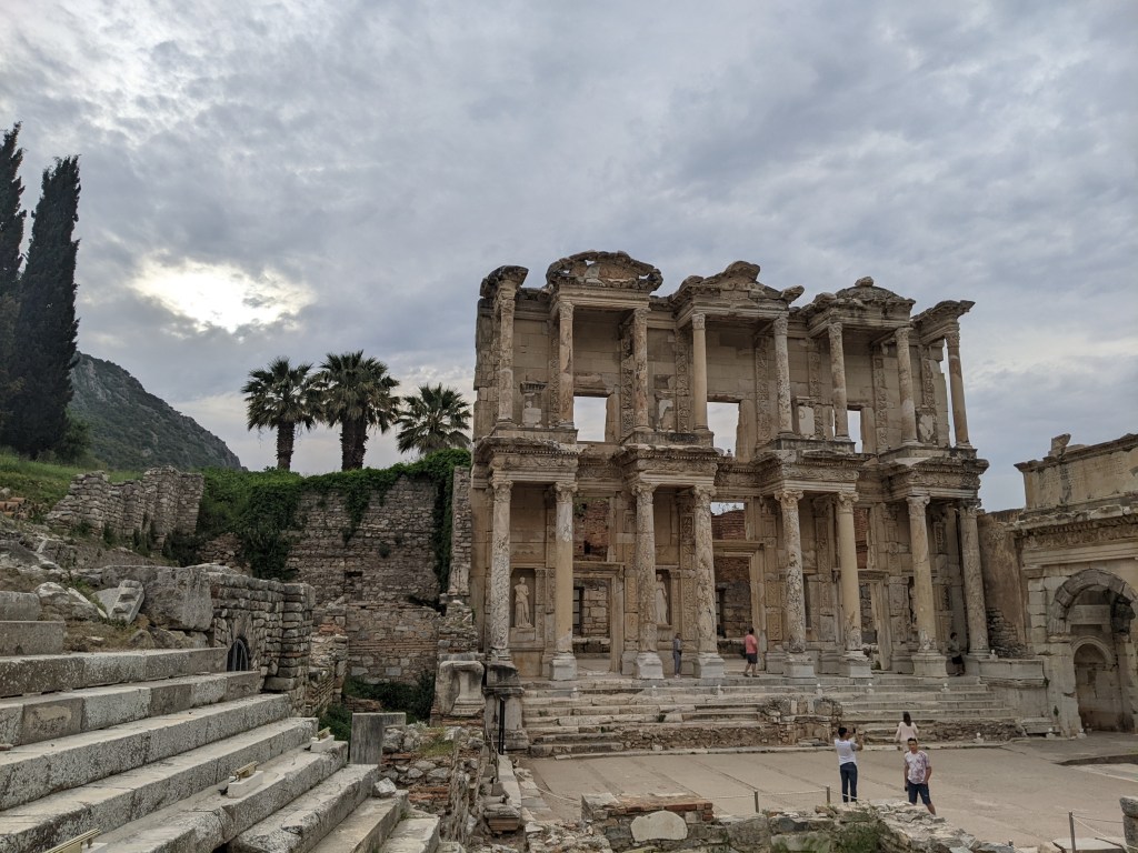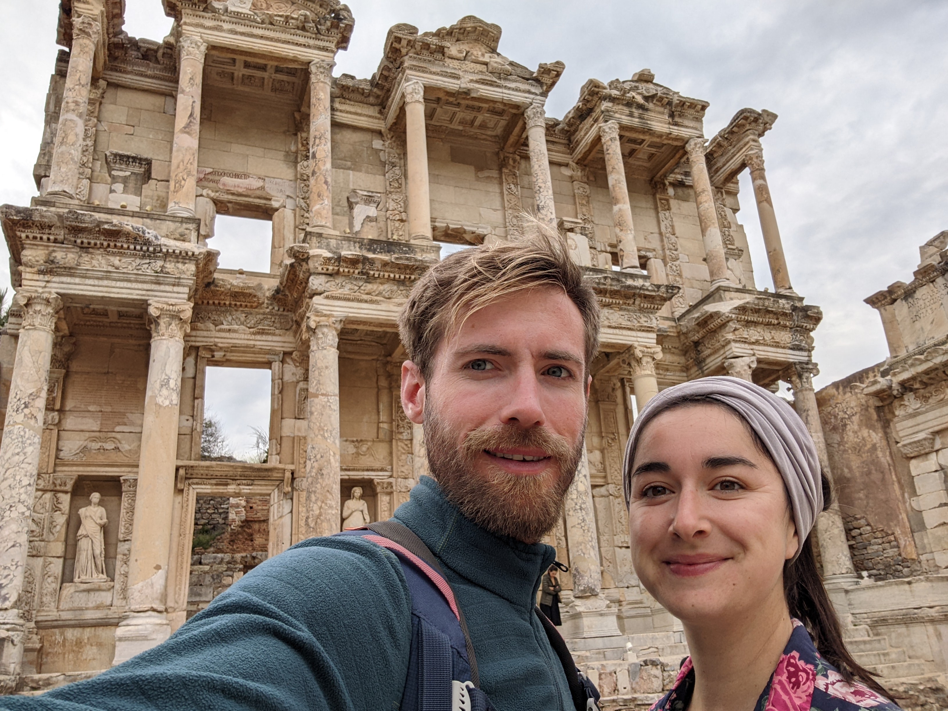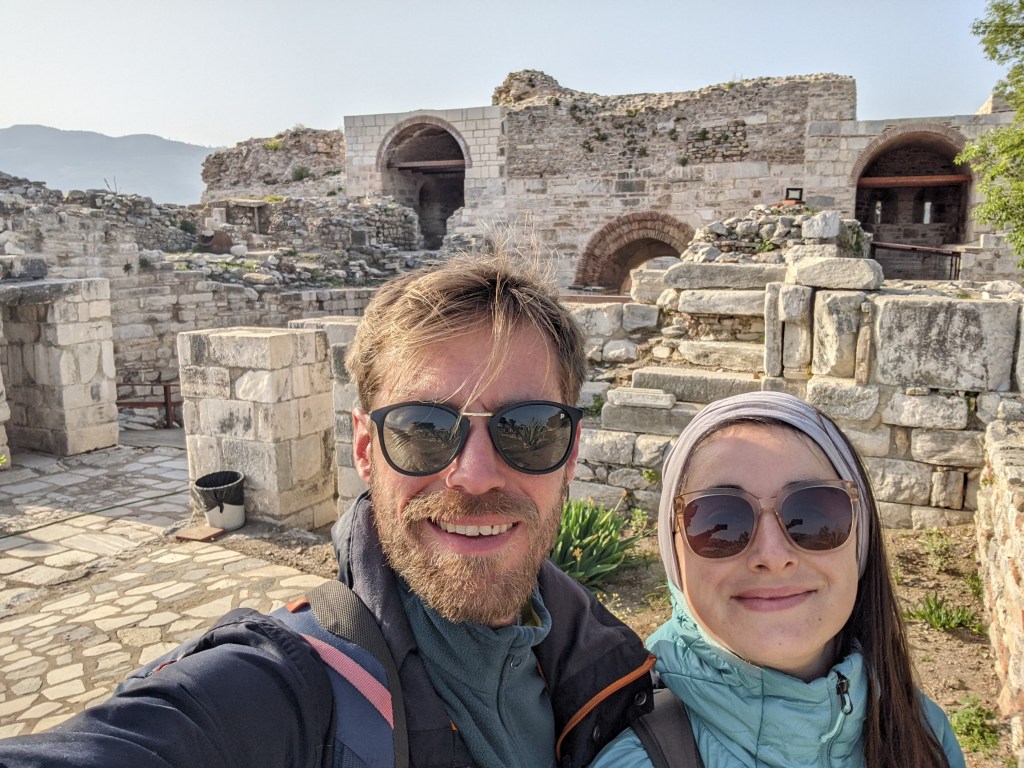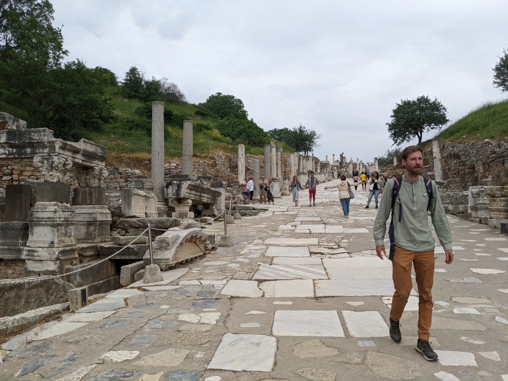 Après une nuit de voyage en bus, on arrive à Selçuk à côté duquel se trouve le site antique d’Éphèse. Tous les backpackers de l’auberge à Izmir nous avaient dit : « You must see Ephesus ! » ; « Don’t leave Turkey without seeing Ephesus ! » ; « Traveling is amazing, you always meet new people ! New cultures ! » ; « French cuisine is so posh, like croque monsieur is just a ham and cheese sandwich ! ». Alors on s’est dits n’écoutons pas les anglais parler de cuisine, allons voir Ephèse et bouclons la boucle de l’eurovelo.