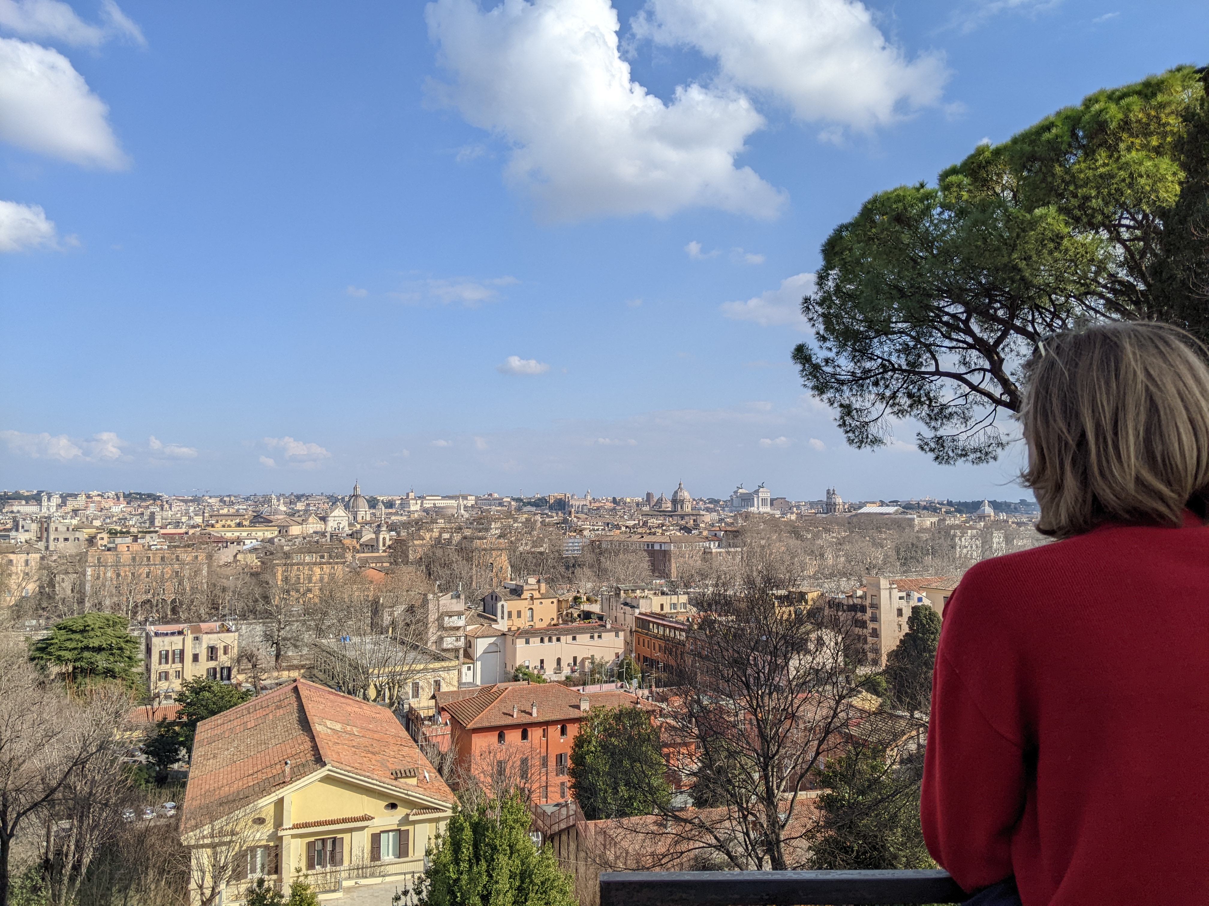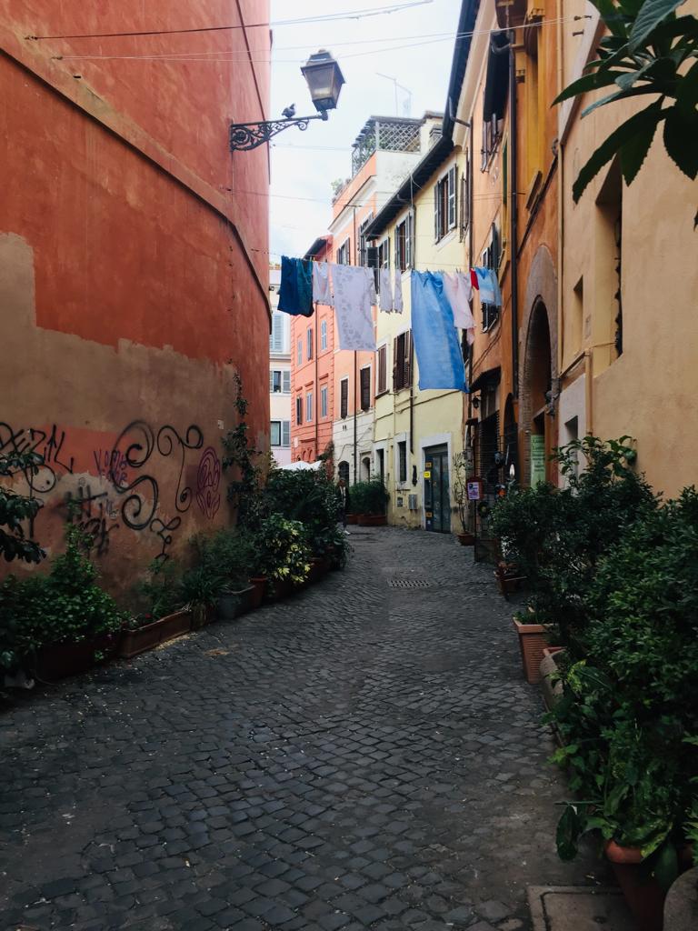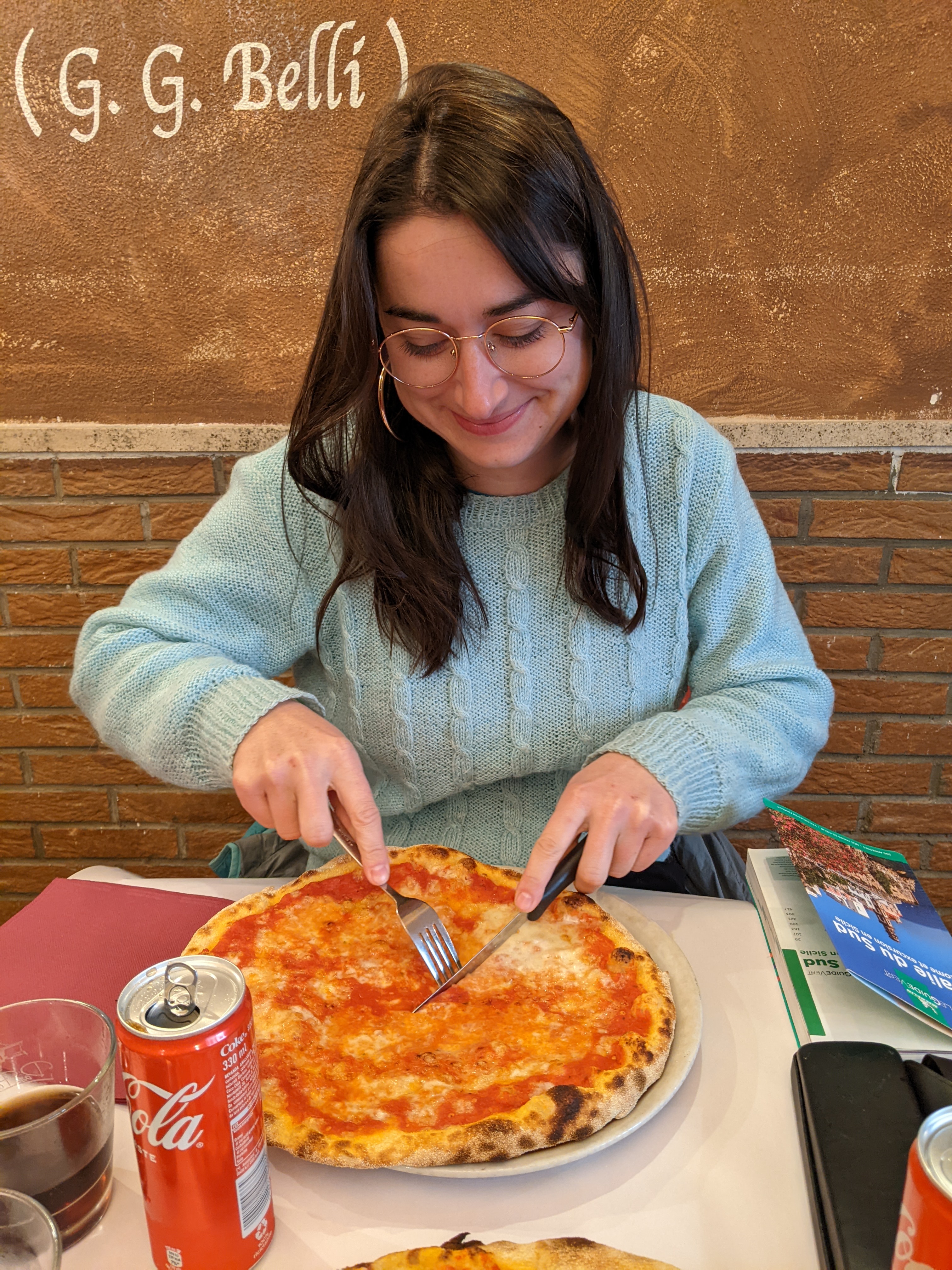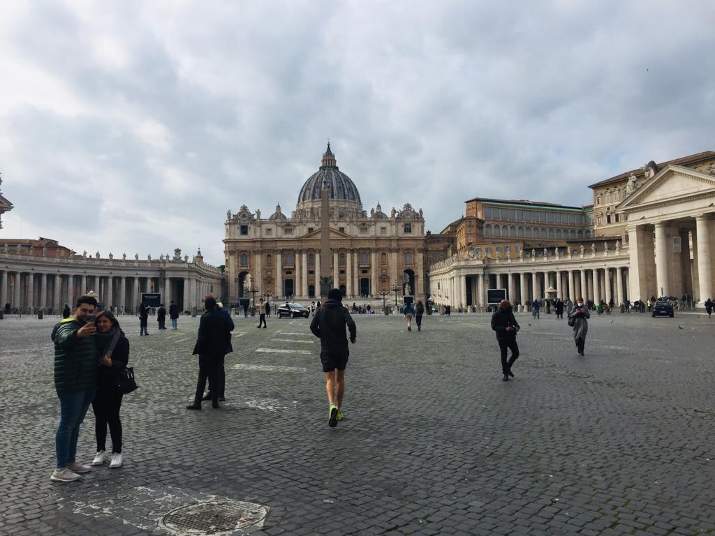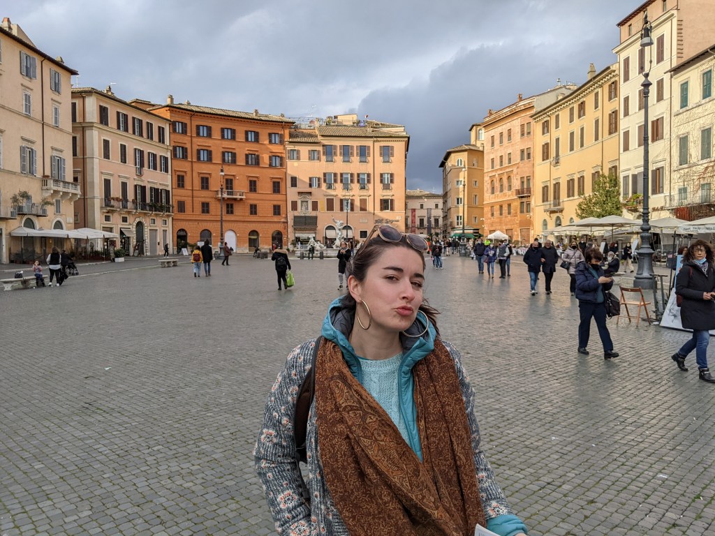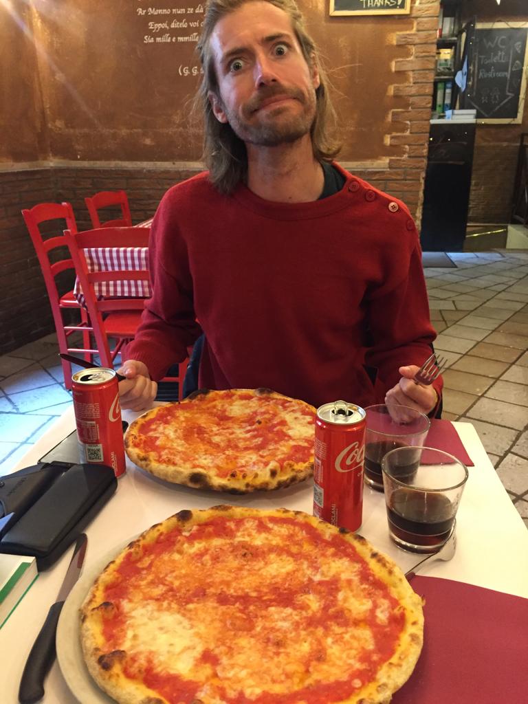 Alors on est arrivés à Rome et qu’est-ce qu’on a fait en premier ? On a été manger parce qu’on avait très très faiiiiim ! On dirait que Lisa a bien aimé son dessert.Ensuite direction Piazza Di Spagna, pour admirer les toits de Rome.Pas loin de la Piazza Di Spagna se trouvent la villa Médicis et la villa Borghese. Dans le parc entourant ces deux villas on peut admirer les bustes d’hommes (que des hommes…) Illustres. Lisa a directement posé à côté de son héro.Thomas aussi d’ailleurs ! Celui-ci a bien inspiré Catherine.Dans les rues attenantes à la Piazza Di Spagna, un grand nombre de boutiques de luxe. Heureusement que nous avions prévu un budget de 50 000 € nous l’avons presque dépassé (un manteau dolce et Gabbana pour Lisa : 9400 € ; et une Rolex pour Thomas qui n’a pas envie de rater sa vie).Nous descendîmes ensuite vers le sud afin de rejoindre la Piazza Navona. On peut y admirer au centre la fontaine des quatres fleuves réalisée par le gars Bernin.Mais la plus grande œuvre d’art de la place c’est Elle.Superbe lumière sur les immeubles de la Piazza Navona.Et nous terminons cette journée avec les copains dans un bar de style vintage bien sympathique (un peu cher mais avec le shopping qu’on a fait Piazza Di Spagna on ne va pas se plaindre).Spiritualité et prières pour notre second jour à Rome puisque nous visitons le Vatican. Admirons un instant le plafond de la chapelle Sixtine peint par Michelangelo. Au centre Dieu créa l’homme.La Basilique Saint-Pierre, monumentale, la moindre petite statue ne doit pas faire moins de 2 mètres de haut. Pas de problèmes de sous pour le Saint-Siège aux 16e et 17e siècles !Une des coupoles de la Basilique.La grande, très grande, coupole centrale.Révélation spirituelle ? Ah bah non ce n’est pas la bible mais un guide de l’Italie.Nous quittons la place Saint-Pierre……Pour nous rendre dans le Trastevere ! Ah un des quartiers les plus sympas de Rome, des petites ruelles piétonnes, des petites restos et bars sympas et des immeubles tout à fait charmants !Nous trouvons un restaurant pour manger une pizza. Mmmmm ! Elle a l’air bonne la pizza !Oh oui elle a l’air très très bonne ! Heu par contre il fait un peu peur le Monsieur quand il a faim.Petite ballade digestive dans les rues du Trastevere après avoir bien mangé.Jour suivant, on s’attèle à la Rome Antique avec la visite du Palatin et du Forum.Le forum ça claque !Marcher dans la rue, lever la tête et voir un monument historique incroyable, on peut résumer Rome comme ça.Le soir après un petit resto, nous pensions que la fameuse fontaine de Trevi serait peu peuplée. C’est raté !Beau panorama sur Rome.Le monsieur nous a proposé d’entrer mais on lui a dit de s’habiller d’abord et qu’on verrait ensuite. Gros manque de pudeur ces romains de l’antiquité, certains n’ont même pas de slip !Théâtre de Marcellus, la construction a débuté sous César et s’est terminée sous Auguste qui l’a dédié à son neveu Marcellus. Il n’a pas vécu très longtemps le pauvre Marcellus mais son théâtre est toujours là.On chille au soleil devant le Capitole.Une belle vue des toits de Rome.La montée fut intense mais cela valait le coup pour rendre hommage à ce grand homme de Rome, connu pour avoir construit une fontaine, mais aussi inventé un genre tout particulier de blagues.