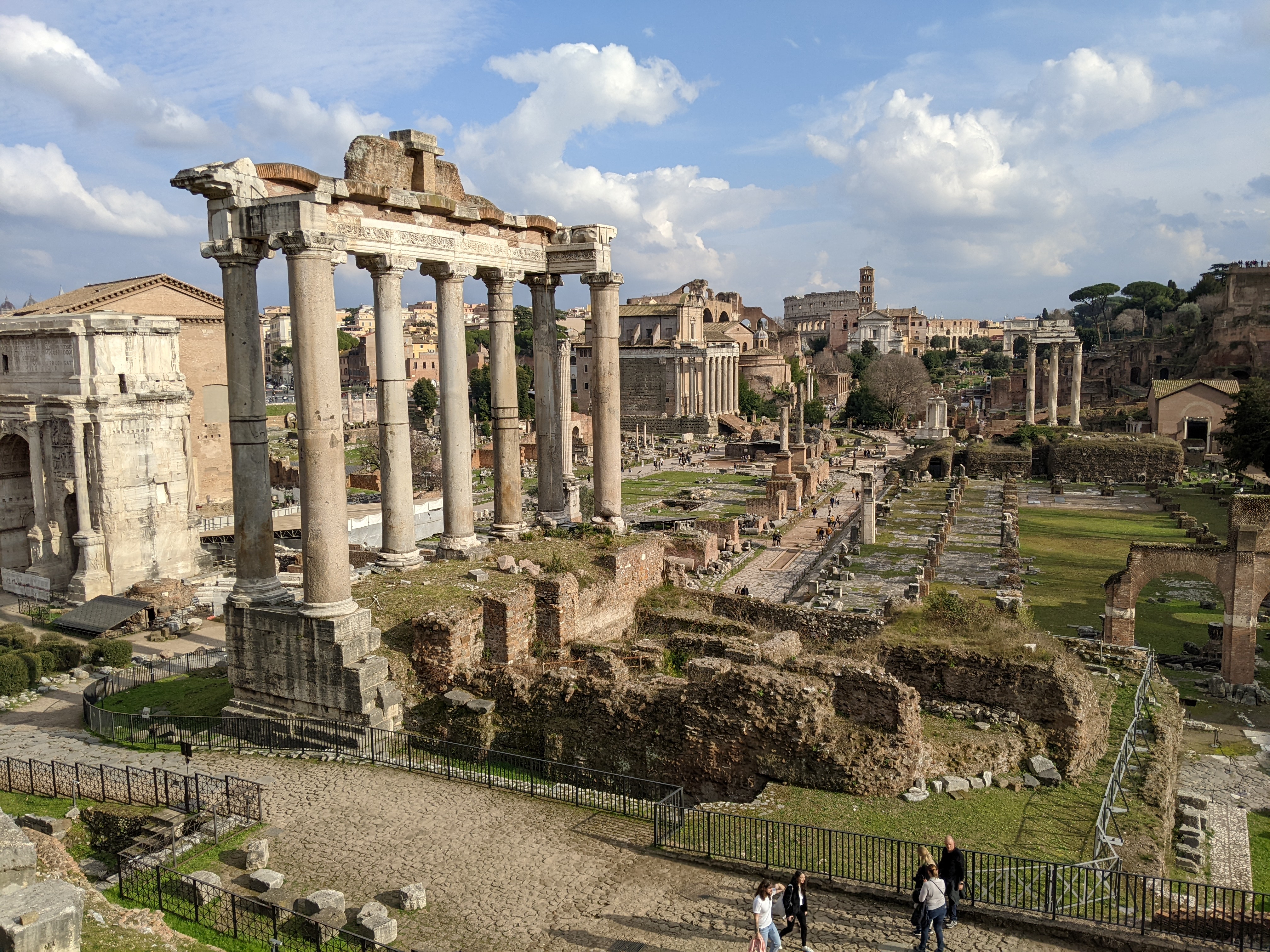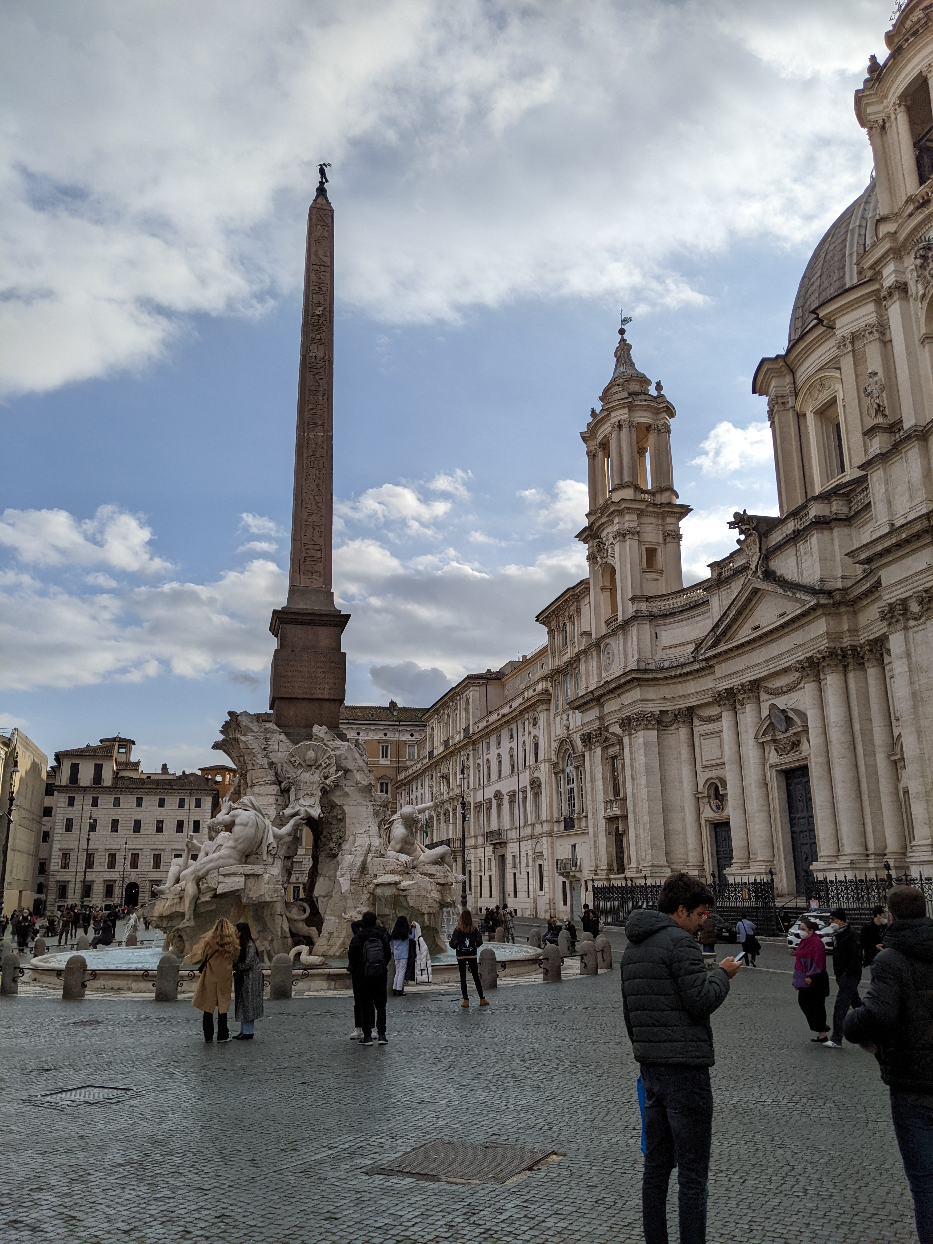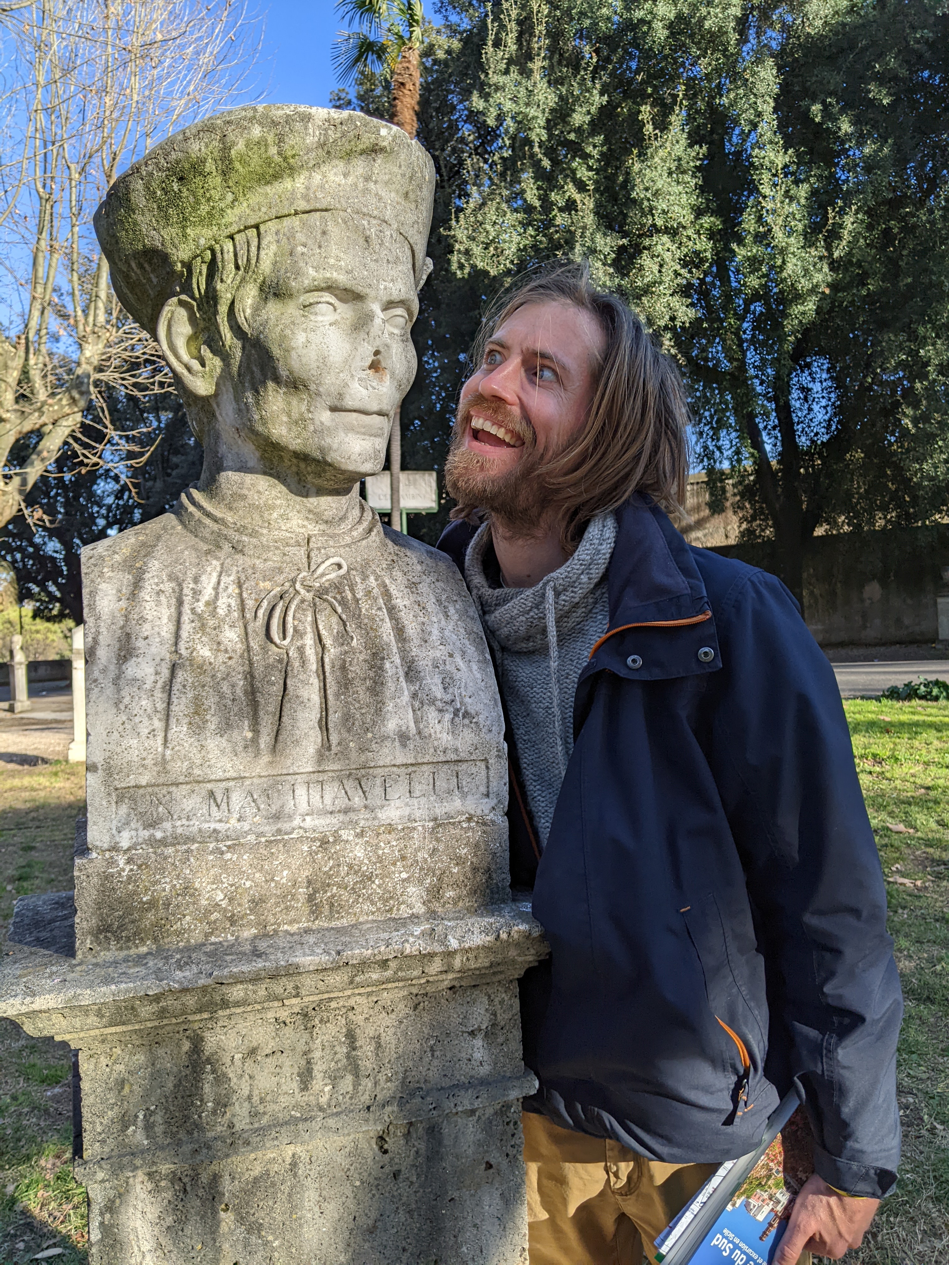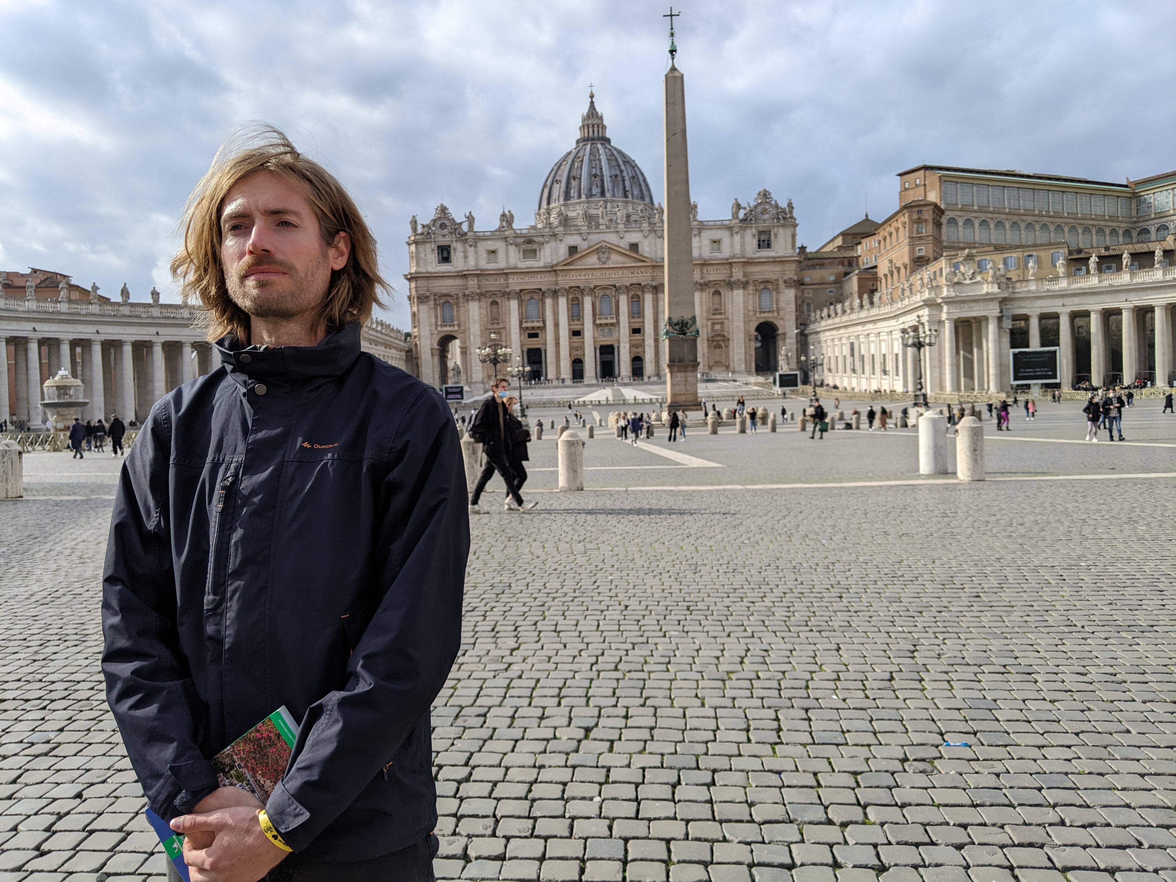 Alors on est arrivés à Rome et qu’est-ce qu’on a fait en premier ? On a été manger parce qu’on avait très très faiiiiim ! On dirait que Lisa a bien aimé son dessert.Ensuite direction Piazza Di Spagna, pour admirer les toits de Rome.Pas loin de la Piazza Di Spagna se trouvent la villa Médicis et la villa Borghese. Dans le parc entourant ces deux villas on peut admirer les bustes d’hommes (que des hommes…) Illustres. Lisa a directement posé à côté de son héro.Thomas aussi d’ailleurs ! Celui-ci a bien inspiré Catherine.Dans les rues attenantes à la Piazza Di Spagna, un grand nombre de boutiques de luxe. Heureusement que nous avions prévu un budget de 50 000 € nous l’avons presque dépassé (un manteau dolce et Gabbana pour Lisa : 9400 € ; et une Rolex pour Thomas qui n’a pas envie de rater sa vie).Nous descendîmes ensuite vers le sud afin de rejoindre la Piazza Navona. On peut y admirer au centre la fontaine des quatres fleuves réalisée par le gars Bernin.Mais la plus grande œuvre d’art de la place c’est Elle.Superbe lumière sur les immeubles de la Piazza Navona.Et nous terminons cette journée avec les copains dans un bar de style vintage bien sympathique (un peu cher mais avec le shopping qu’on a fait Piazza Di Spagna on ne va pas se plaindre).Spiritualité et prières pour notre second jour à Rome puisque nous visitons le Vatican. Admirons un instant le plafond de la chapelle Sixtine peint par Michelangelo. Au centre Dieu créa l’homme.La Basilique Saint-Pierre, monumentale, la moindre petite statue ne doit pas faire moins de 2 mètres de haut. Pas de problèmes de sous pour le Saint-Siège aux 16e et 17e siècles !Une des coupoles de la Basilique.La grande, très grande, coupole centrale.Révélation spirituelle ? Ah bah non ce n’est pas la bible mais un guide de l’Italie.Nous quittons la place Saint-Pierre……Pour nous rendre dans le Trastevere ! Ah un des quartiers les plus sympas de Rome, des petites ruelles piétonnes, des petites restos et bars sympas et des immeubles tout à fait charmants !Nous trouvons un restaurant pour manger une pizza. Mmmmm ! Elle a l’air bonne la pizza !Oh oui elle a l’air très très bonne ! Heu par contre il fait un peu peur le Monsieur quand il a faim.Petite ballade digestive dans les rues du Trastevere après avoir bien mangé.Jour suivant, on s’attèle à la Rome Antique avec la visite du Palatin et du Forum.Le forum ça claque !Marcher dans la rue, lever la tête et voir un monument historique incroyable, on peut résumer Rome comme ça.Le soir après un petit resto, nous pensions que la fameuse fontaine de Trevi serait peu peuplée. C’est raté !Beau panorama sur Rome.Le monsieur nous a proposé d’entrer mais on lui a dit de s’habiller d’abord et qu’on verrait ensuite. Gros manque de pudeur ces romains de l’antiquité, certains n’ont même pas de slip !Théâtre de Marcellus, la construction a débuté sous César et s’est terminée sous Auguste qui l’a dédié à son neveu Marcellus. Il n’a pas vécu très longtemps le pauvre Marcellus mais son théâtre est toujours là.On chille au soleil devant le Capitole.Une belle vue des toits de Rome.La montée fut intense mais cela valait le coup pour rendre hommage à ce grand homme de Rome, connu pour avoir construit une fontaine, mais aussi inventé un genre tout particulier de blagues.