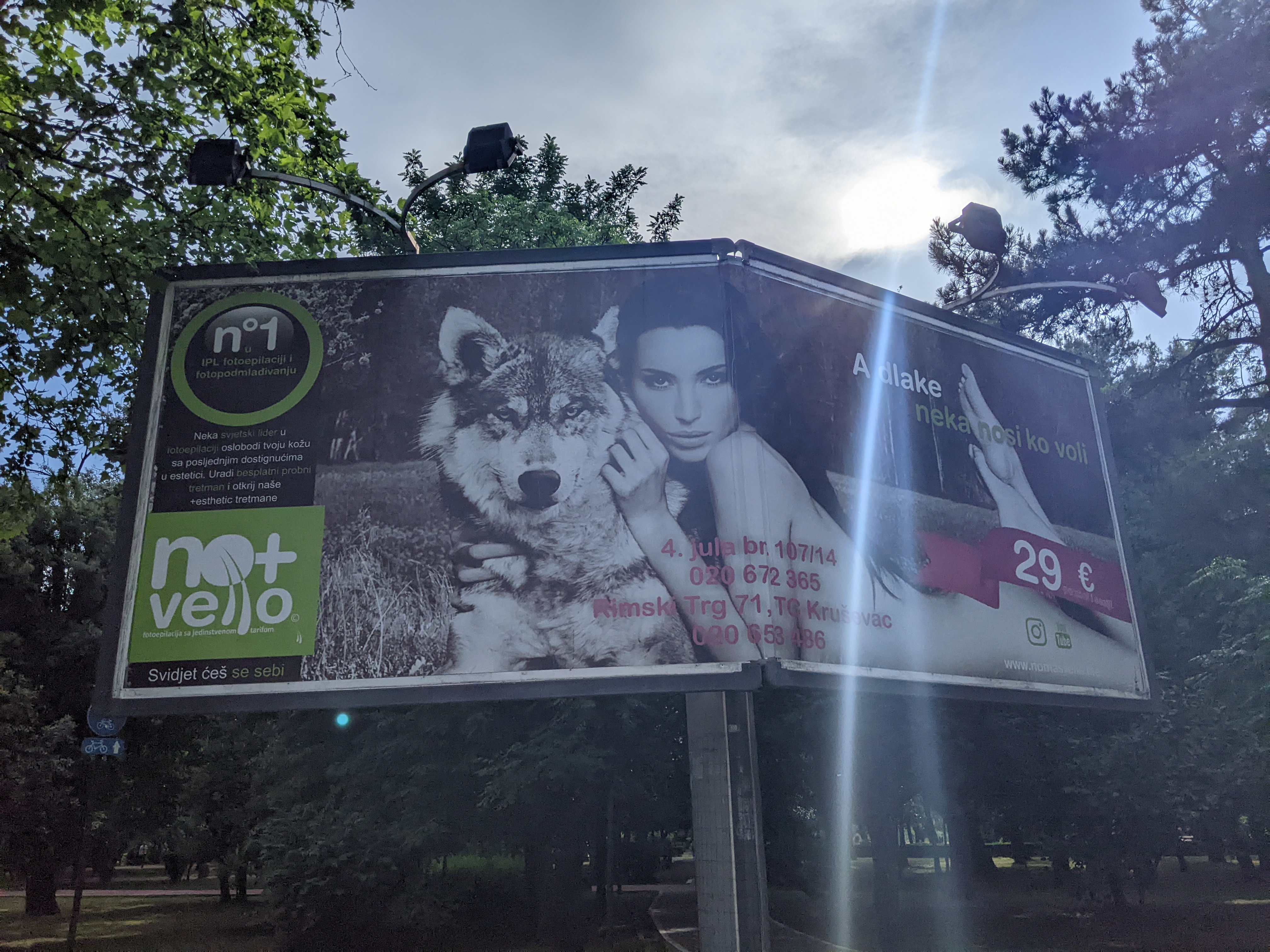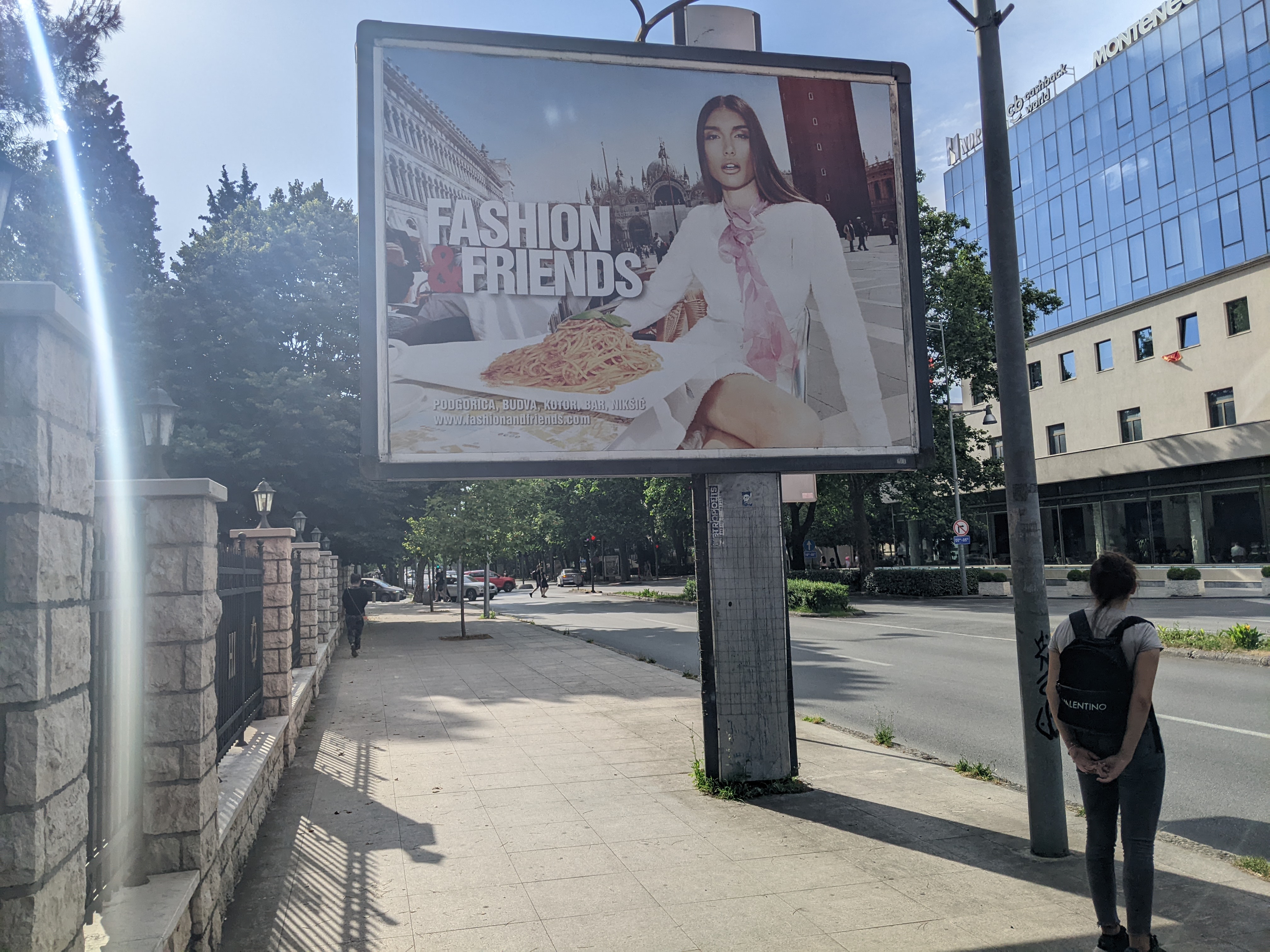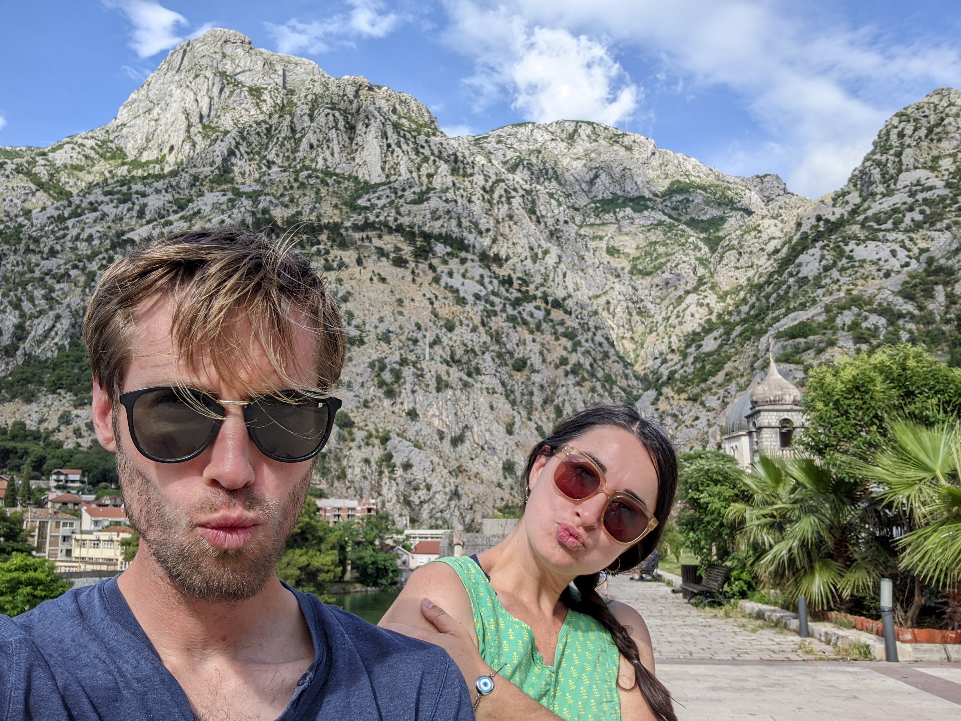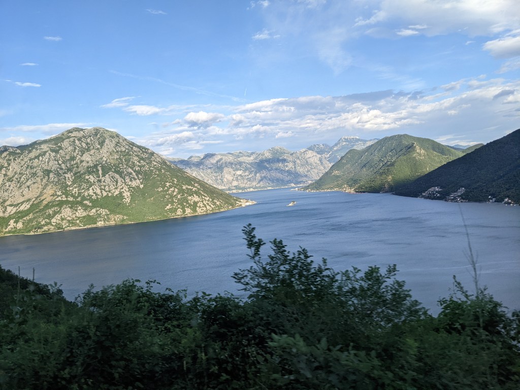 L’ours brun et le loup se promènent dans cette forêt.Les arbres sont gigantesques et pluri-centenaires.Trêve de nature ! On a besoin de buildings et de pots d’échappement. On part sur Podgorica la capitale. Un peu déçus par la ville mais pas par les affiches. Ici une femme et son loup de compagnie.On adore aussi les pâtes et la mode !On a aussi fait un petit détour par l’ancienne capitale : Cetinje. Ici l’ancienne ambassade de France.Les bouches de Kotor entre mer et montagne.Salut ! C’est nous à Kotor !On va devenir des influenceurs !Parce qu’on sort des sentiers battus, on va là où les touristes ne vont pas.Et on gare le fourgon sur des places de parking non autorisées aux fourgons sans même vérifier. On est vraiment des baroudeurs !Après ces aventures de routards. On reprend la route autour des bouches de Kotor.Pour aller poser nos quatres roues dans un camping au bord de la mer. Quelques jours de plage et glandouille pour organiser la suite !
