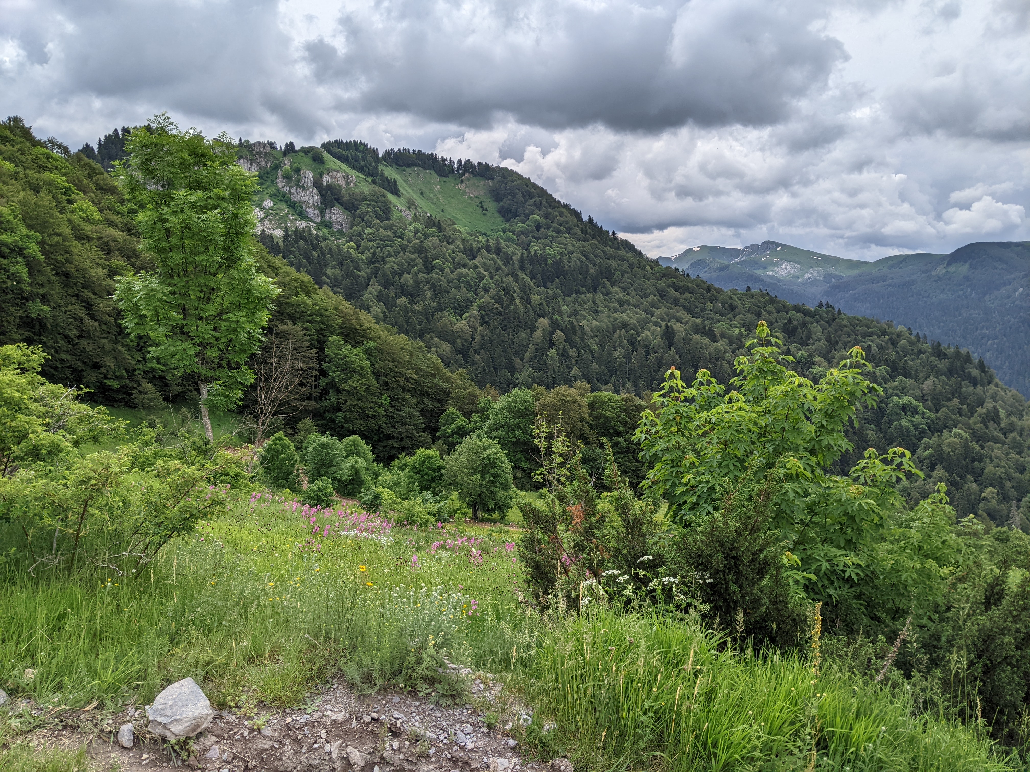 Les éclaircies sont de courte durée alors vite on redescend se réfugier dans la forêt suffisamment dense pour nous protéger de la pluie très abondante !