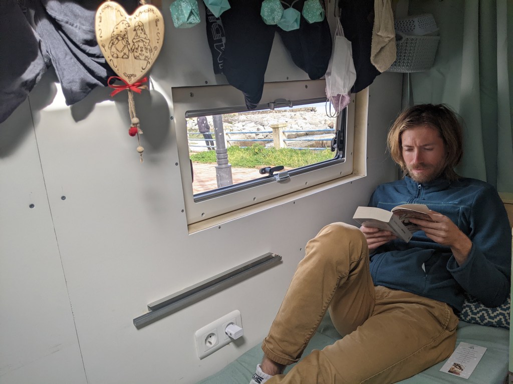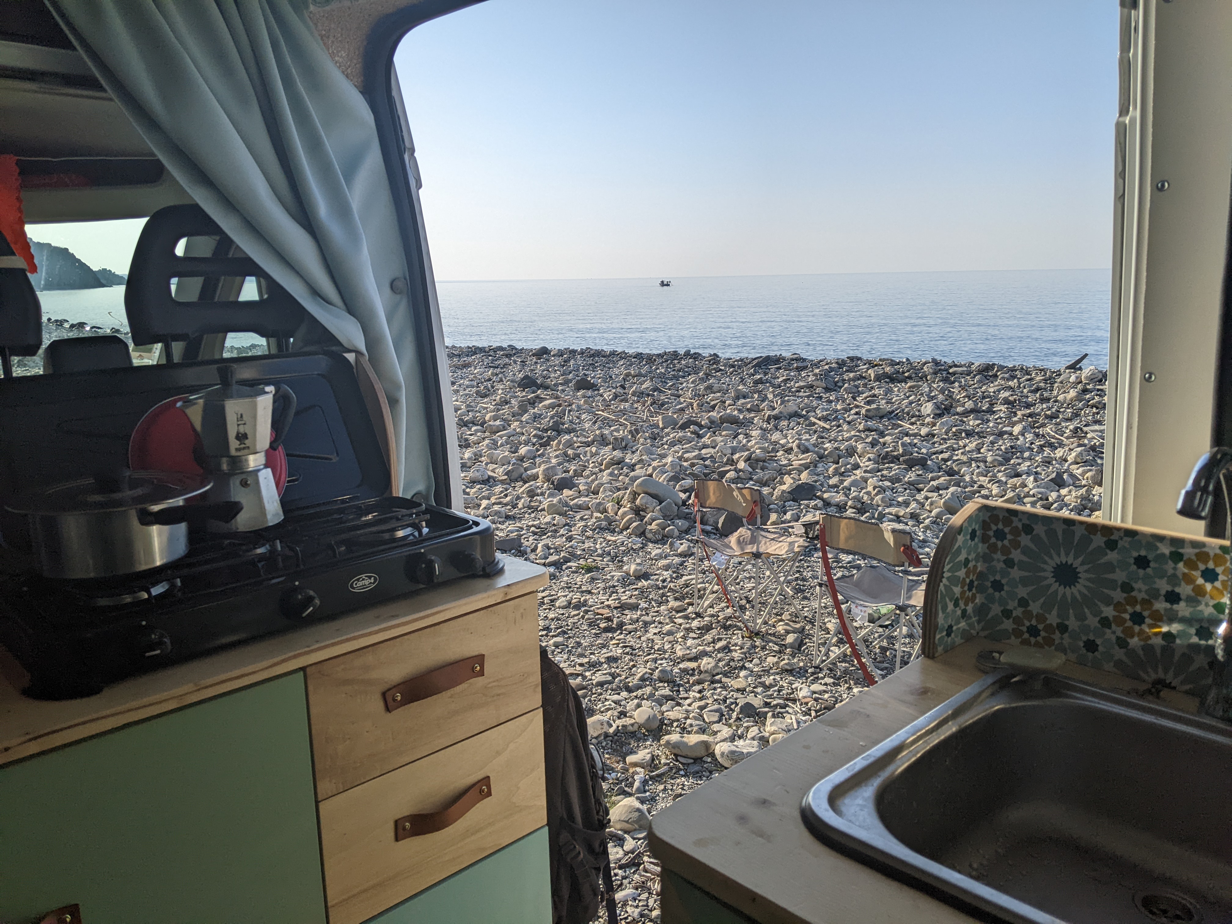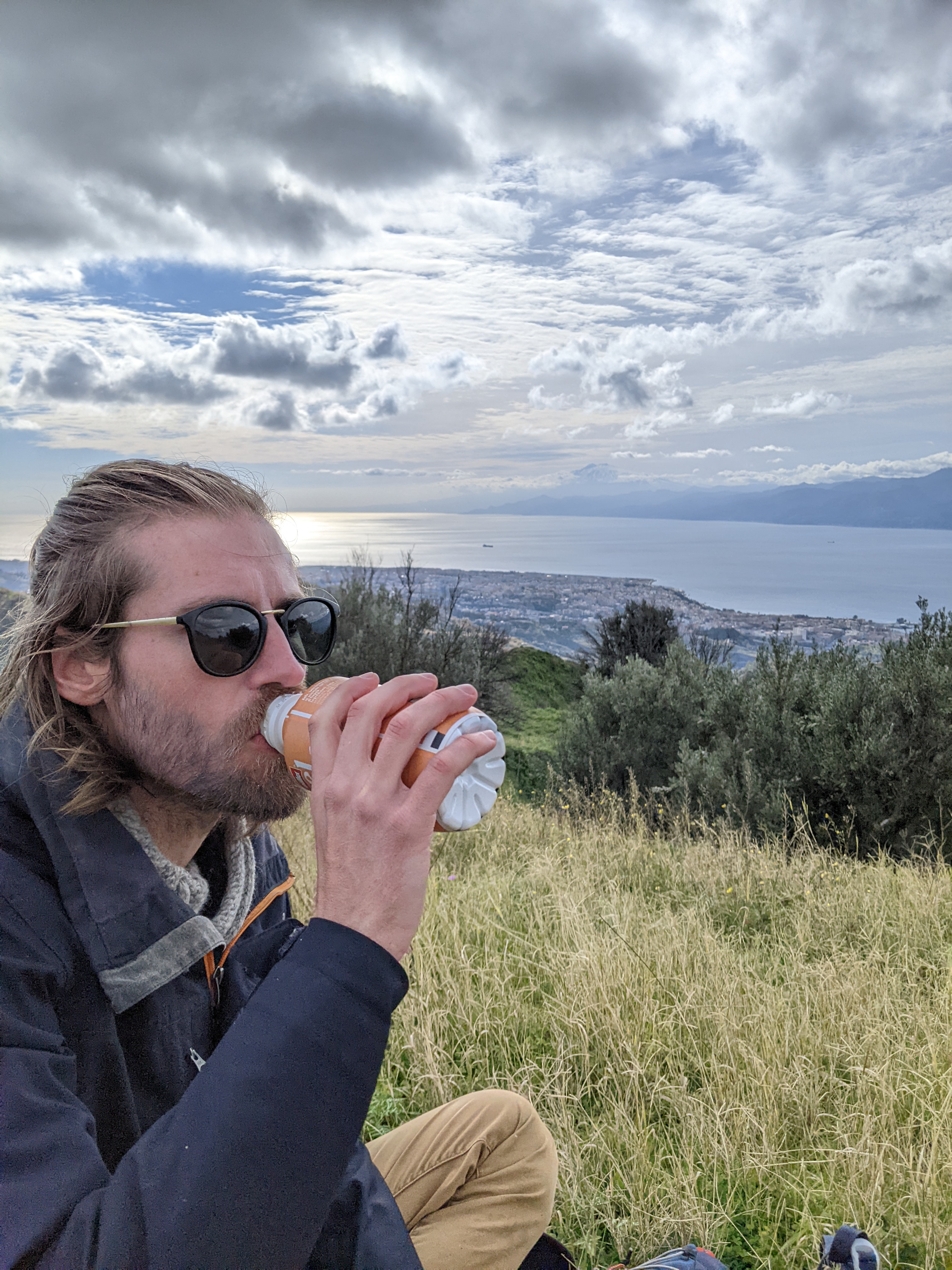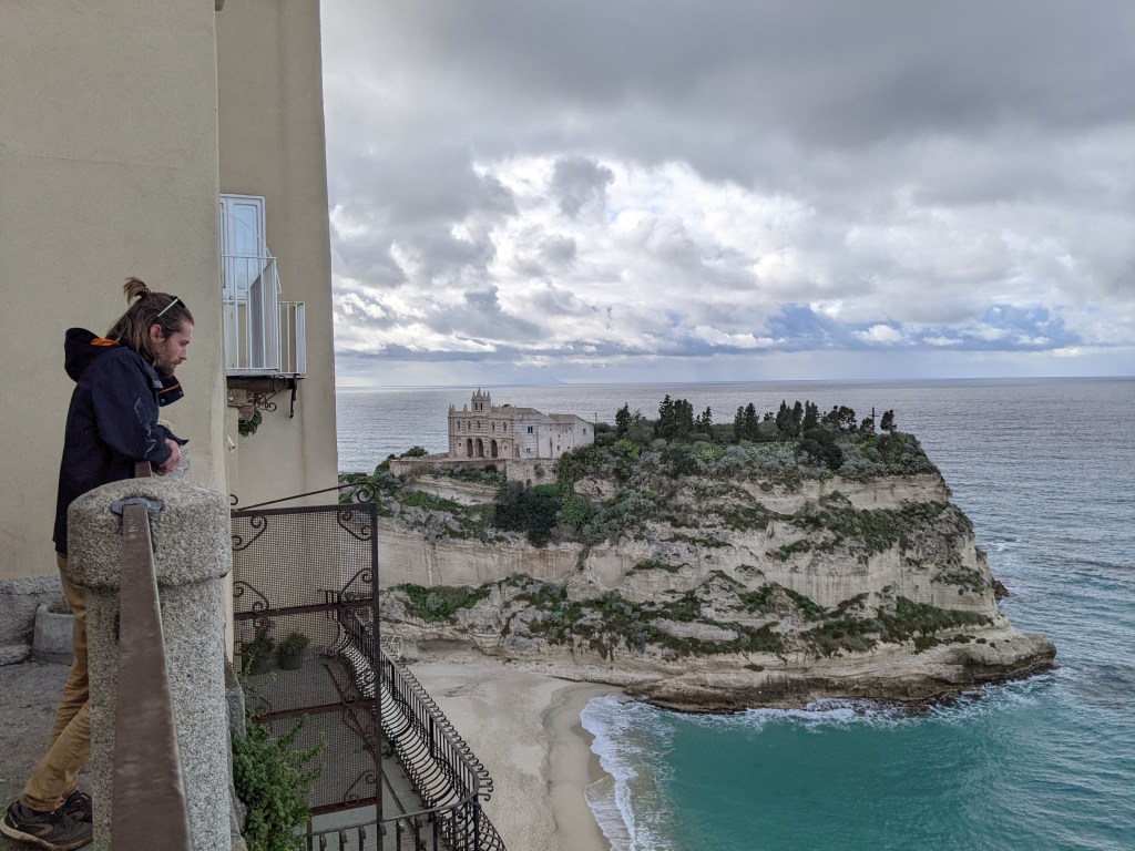 Notre première nuit sur la plage.Et donc premier petit déjeuner sur la plage.Posey au KLM sur ma branche (pas du confortable en vrai).Pique-nique yogi pour Thomas.Les italochats.Les pieds dans l’eau.Tout au sud de Calabre, vue sur l’Etna enneigé.La Sicile nous attend !Une pub pour les produits laitiers.Thomas se moque de moi et me coince la capuche derrière les oreilles. Venez me chercher svp je souffre.Jamais sans mon plaid ( il se moque encore de moi)Un petit village au doux nom de Tropea.Ça manquait un peu de photos de notre vie dans le camion : voici Thomas qui lit et ses slips qui sèchent.Qui a la plus belle dentition ?Dernier matin en Calabre, il vaut souvent mieux regarder au loin qu’à ses pieds. Prochaine étape : Sicilia !
