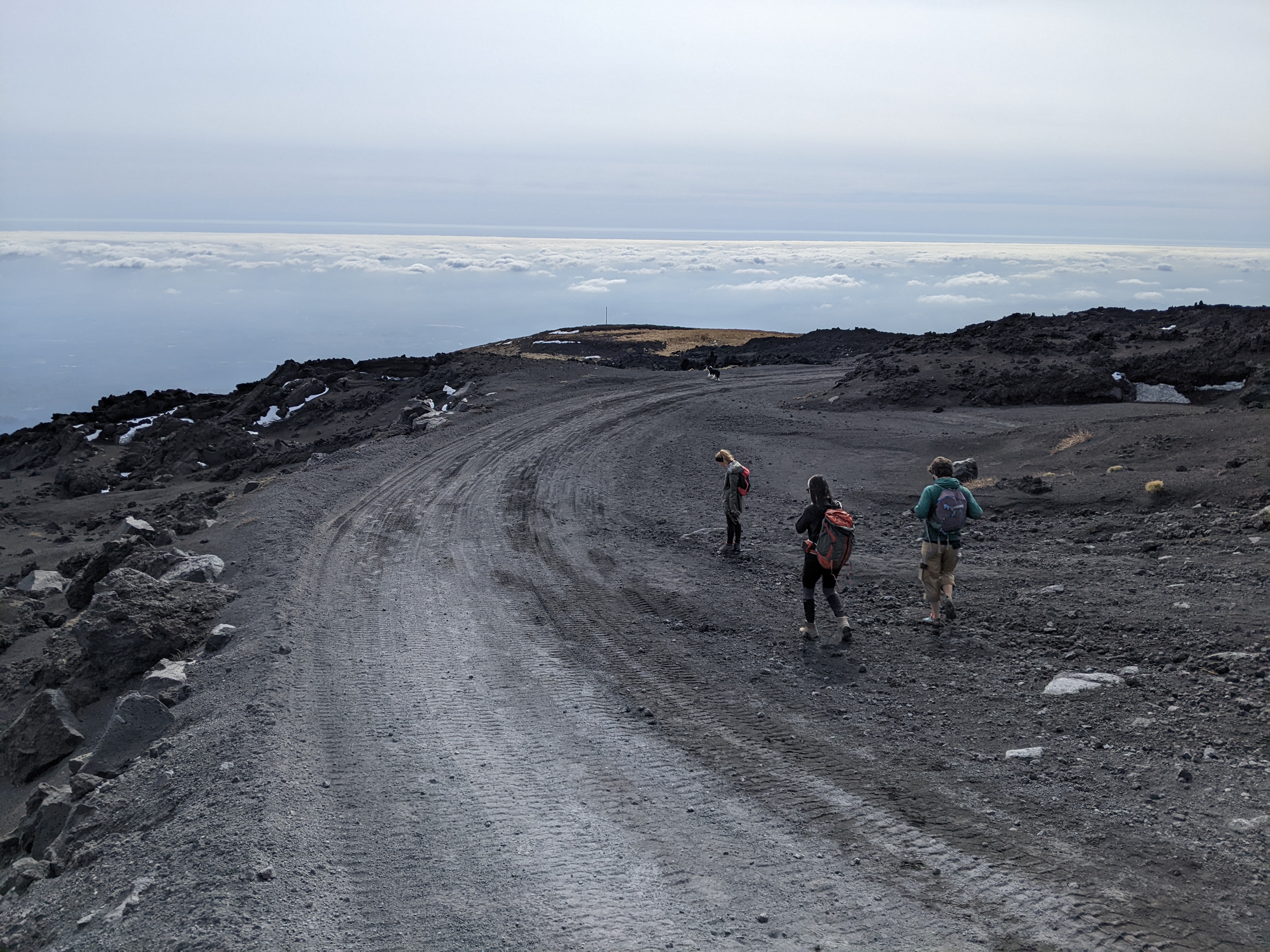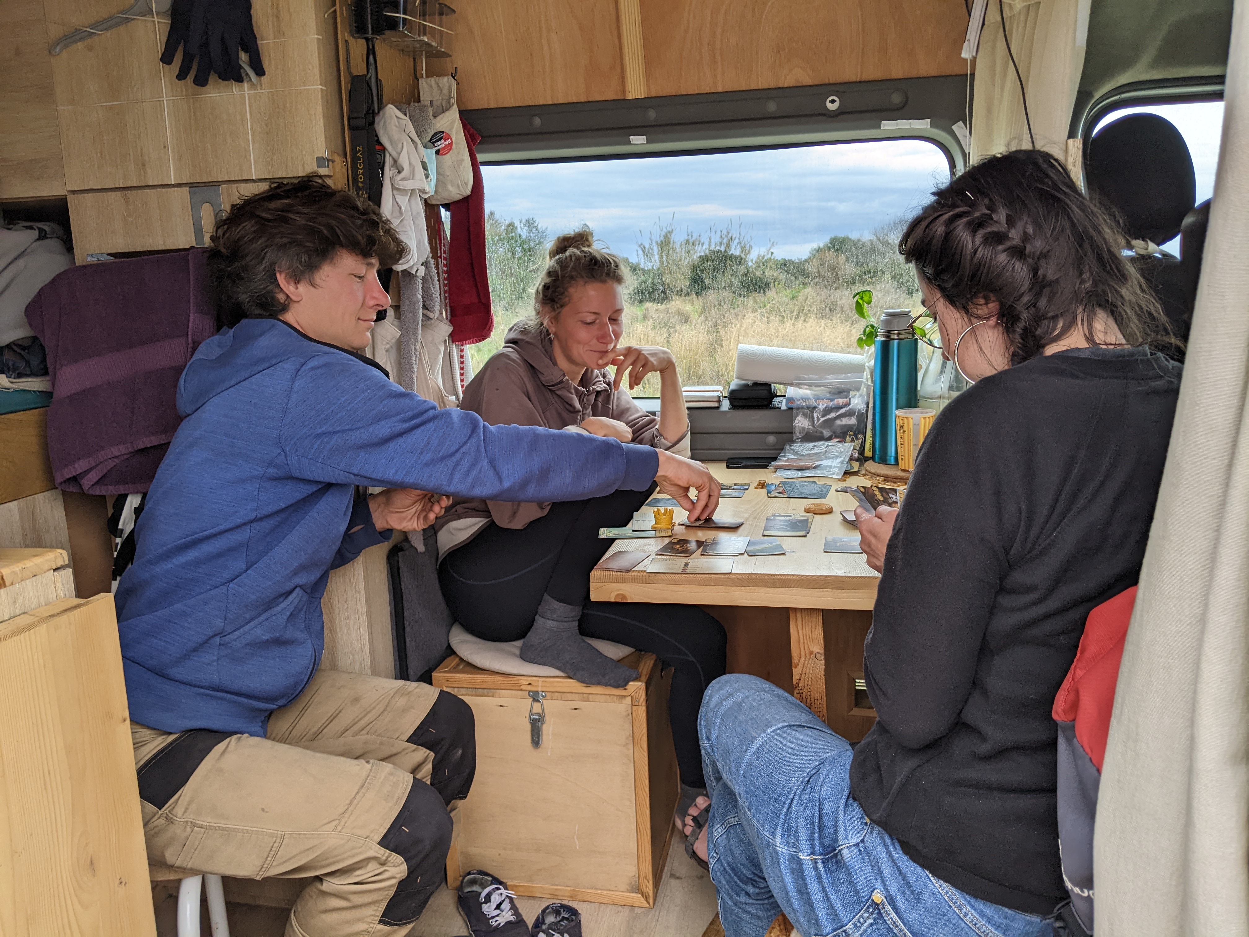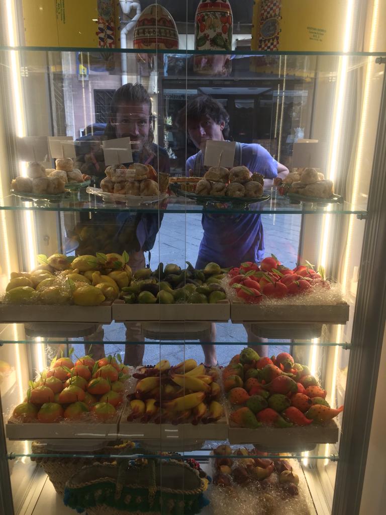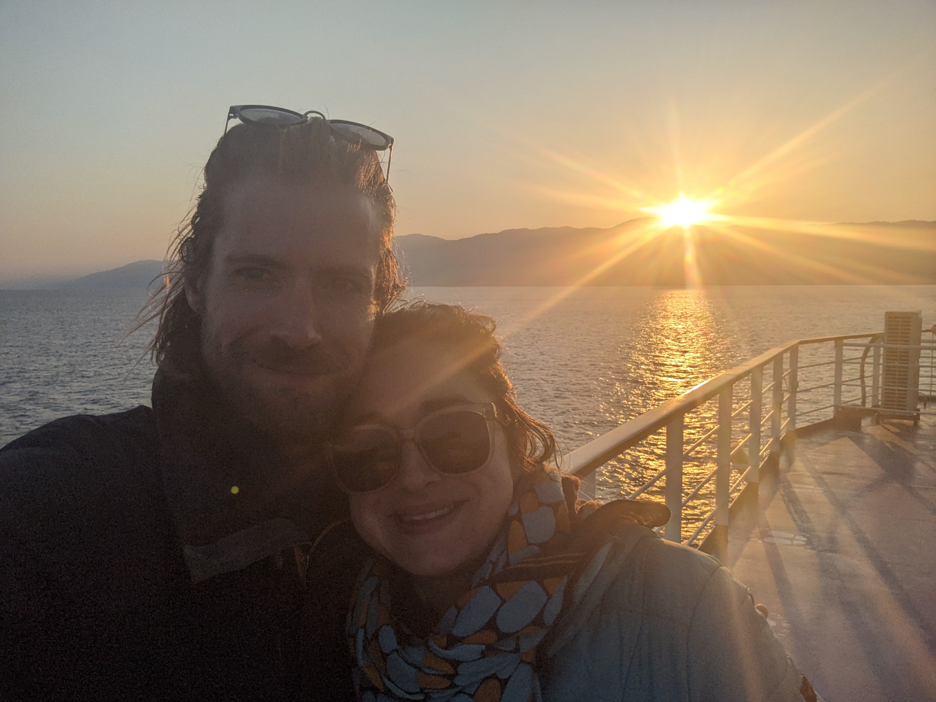 Syracuse et sa belle île d’OrtygiaAaaaargh on se fait attaquer par les esprits des morts dans les tombes troglodytes de la nécropole de PantalicaPerdus au milieu des montagnes ce ne sont pas des esprits que nous avons rencontrés mais des supers copains : Théo et Cassandra. Nous avons formé la communauté de la procuration : objectif Palerme pour une permanence du consul. Donc en attendant le jour de la procuration on s’est baladés. Petit dej au pied de l’Etna !Tuto pose de star : jambe décalée, la fesse en l’air et la main sur la hanche. Appâter un chien mignon pour compléter.Repas et sieste chauffés par le sable noir. Pas possible d’aller plus haut sans guide, trop d’activité actuellement !Descente au dessus de la mer de nuages.On joue chez les voisins sur une plage où on est restés deux jours : apéro, gym, séance coiffure, jeux…Sur la route de Palerme, nuit au bord de l’eau.Ballade sous les palmiers après le petit tour au consulat.Après la tournée de procurations, la tournée de Spritz !Avant de quitter la Sicile on passe une journée entre Isola Bella et Taormina.Isola Bella vue depuis Taormina On se recoiffe pour la photo.La mer est bleue, le ciel est bleu, ils sont amoureux.Selfie de copains malinsLe meilleur canoli de Sicile se trouve à Taormina et Cassandra a hâte de le goûter. Verdict : délicieux !!Du sucre et des garçons : les plaisirs de la vie.Theo est prêt pour une tournée de… Spritz !!Le soleil se couche et nous quittons la Sicile. Les copains suivent sur le bateau suivant pour un retour en Calabre.